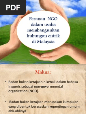 . Transcript PERANAN KERAJAAN MASYARAKAT SERTA NGO DALAM MEMBANTU MENGUKUHKAN HUBUNGAN ETNIK DI MALAYSIA NOR SHUHADA BINTI CHE OSMAN SITI. The organizations goal is to build relationships between the rural and the urban. Sahabat Alam Malaysia SAM merupakan sebuah NGO di Malaysia yang ditubuhkan pada 1977 untuk memperjuangan kepentingan alam sekitar daripada ancaman.